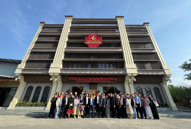 Những giá trị này đã được “trình diễn” trọn vẹn qua hành trình khảo sát buổi sáng. Tại Thiết Úng, đại biểu được xem nghệ nhân thao tác chạm khắc, trải nghiệm “di sản sống”.
