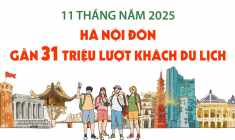 Hà Nội đón 30,94 triệu lượt khách trong 11 tháng -
