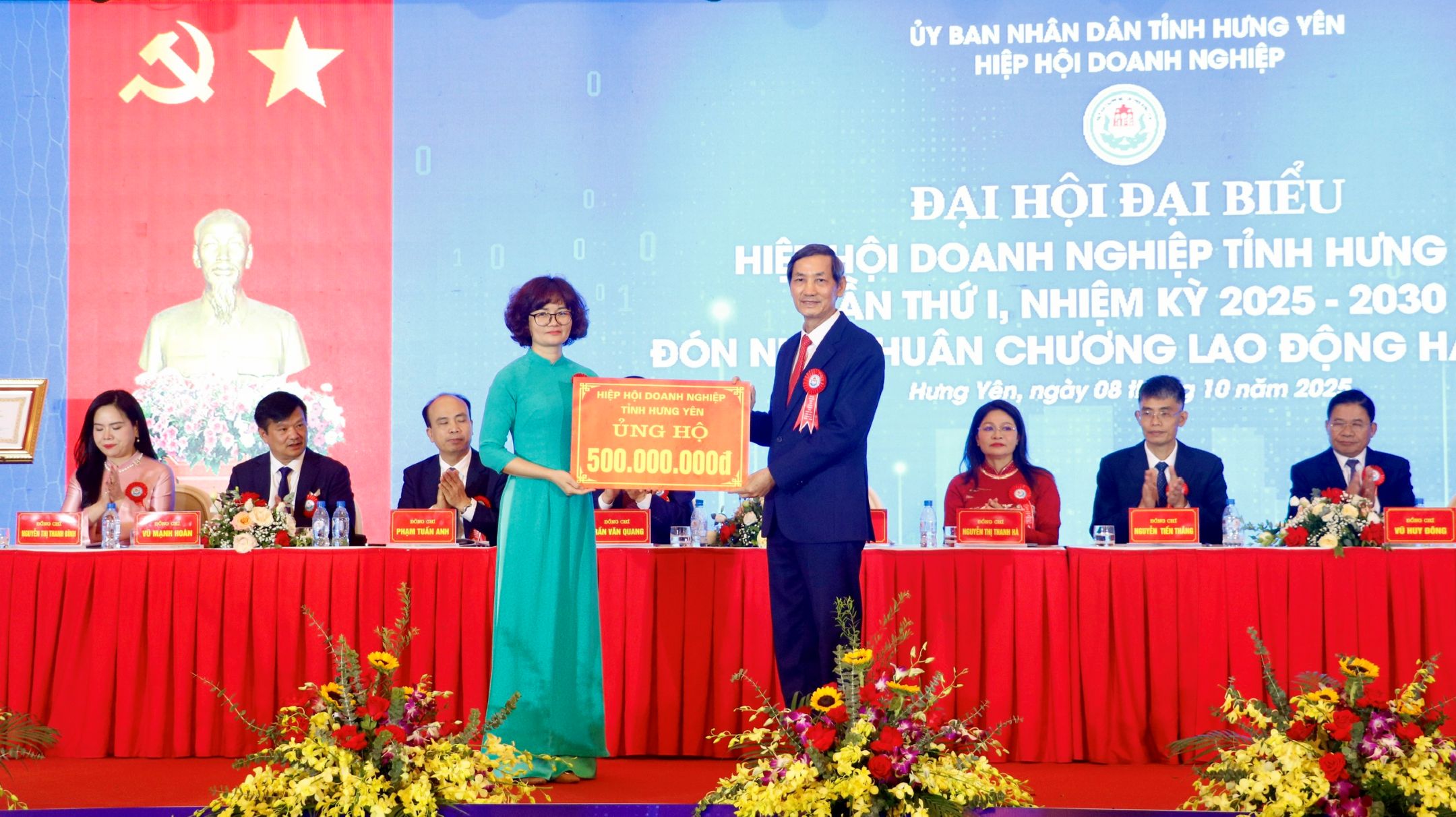 Đại hội cũng trao tặng 500 triệu đồng thông qua Ủy ban MTTQ tỉnh Hưng Yên hỗ trợ xây nhà ở cho các gia đình liệt sĩ đã hy sinh anh dũng tại Bến phà Long Đại, tỉnh Quảng Bình và ủng hộ đồng bào bị ảnh hưởng bởi cơn bão số 10 vừa qua.