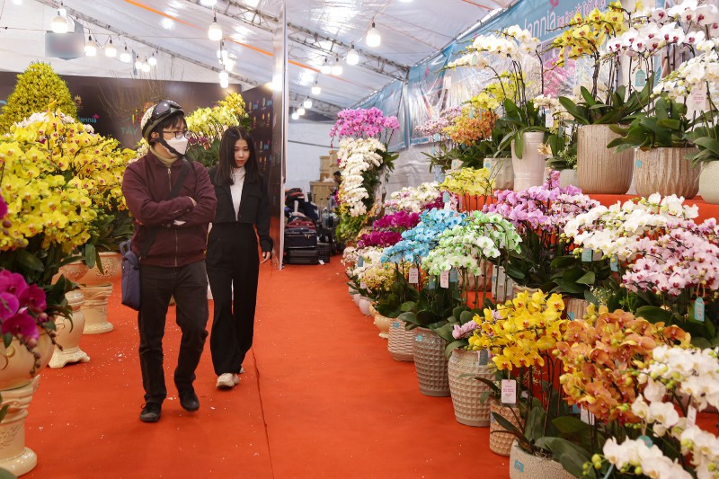 Vẫn như mọi năm, lan hồ điệp tiếp tục giữ vị trí cao cấp trên thị trường. Một cửa hàng lớn tại Lạc Long Quân hiện trưng bày khoảng 1.000 chậu lan. Mức giá trải rộng từ vài triệu đến hàng chục triệu đồng mỗi chậu. Có chậu ghép hơn 200 cành, giá trên 70 triệu đồng, phục vụ khách doanh nghiệp hoặc biếu tặng.