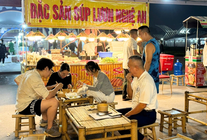 | Các gian hàng ẩm thực thu hút người dân và du khách. |