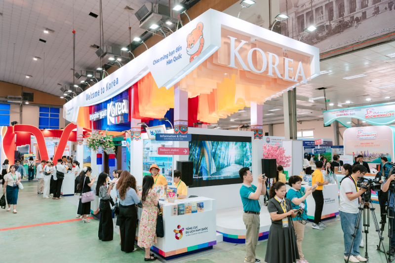 | Gian hàng của Tổng cục Du lịch Hàn Quốc tại VITM 2026 hấp dẫn doanh nghiệp và du khách. |