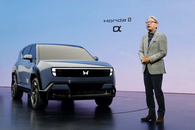 | Ông Toshihiro Mibe, Chủ tịch của Honda Motor và mẫu Honda 0 α (alpha). |