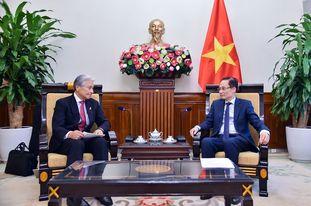 Tại buổi tiếp, Bộ trưởng Ngoại giao Lê Hoài Trung hoan nghênh chuyến thăm của Thống đốc Fukuda Tomikazu vào thời điểm quan hệ Đối tác chiến lược toàn diện Việt Nam - Nhật Bản đang phát triển mạnh mẽ, hiệu quả và thực chất trên mọi lĩnh vực.