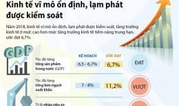 [Infographic] Tăng trưởng GDP năm 2018 ước đạt trên 6,7%Năm 2018, kinh tế xã hội phát triển ổn định, quy mô nền kinh tế tăng mạnh, ước đạt trên 5,5 triệu tỷ đồng (khoảng 240,5 tỷ USD), gấp trên 1,3 lần năm 2015. -