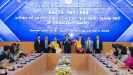 Huế công bố quyết định bổ nhiệm Chánh Thanh tra và Chánh Văn phòng UBND thành phốChiều 9/12, UBND TP. Huế đã tổ chức hội nghị công bố quyết định của Chủ tịch UBND thành phố về công tác cán bộ. -