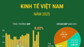 Kinh tế Việt Nam năm 2025Năm 2025, nền kinh tế thể hiện khả năng phục hồi kiên cường. GDP tăng trưởng khá với mức tăng ước đạt 8,02% so với năm trước, chỉ thấp hơn tốc độ tăng của năm 2022 trong giai đoạn 2011-2025. Lạm phát bình quân được kiểm soát ở mức 3,31%; đạt mục tiêu Quốc hội đề ra. Tổng kim ngạch xuất, nhập khẩu năm 2025 ước đạt 930,05 tỷ USD... -