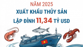 Xuất khẩu thủy sản đạt 11,34 tỷ USD trong năm 2025Năm 2025 được xem là một trong những năm nhiều thách thức đối với ngành thủy sản Việt Nam, từ nguy cơ áp thuế đối ứng, thuế chống bán phá giá, chi phí sản xuất cao đến các rào cản kỹ thuật ngày càng khắt khe. Vượt qua nhiều khó khăn, xuất khẩu thủy sản Việt Nam đã ghi nhận mức tăng vượt dự kiến (tăng 13,1% so với năm 2024) và lập đỉnh mới với kim ngạch xuất khẩu đạt 11,34 tỷ USD.