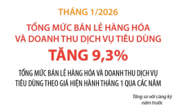 Tổng mức bán lẻ hàng hóa và doanh thu dịch vụ tiêu dùng tăng 9,3% trong tháng 1/2026 -