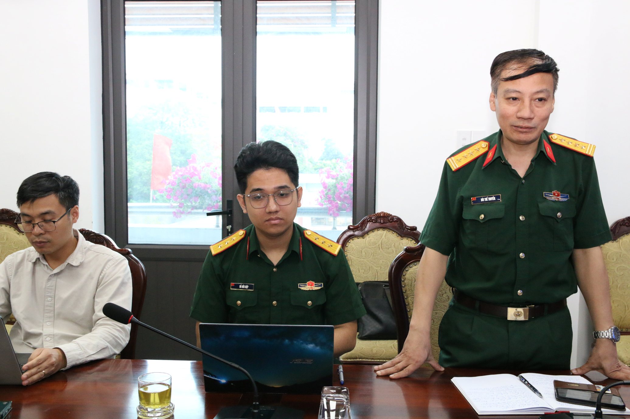 Đại diện Học viện Kỹ thuật Quân sự - đơn vị chủ trì nhiệm vụ phát biểu tại hội nghị. |