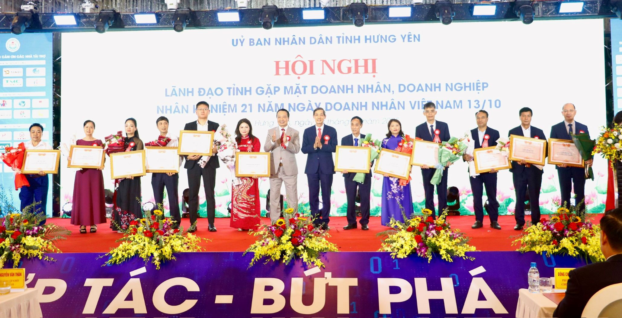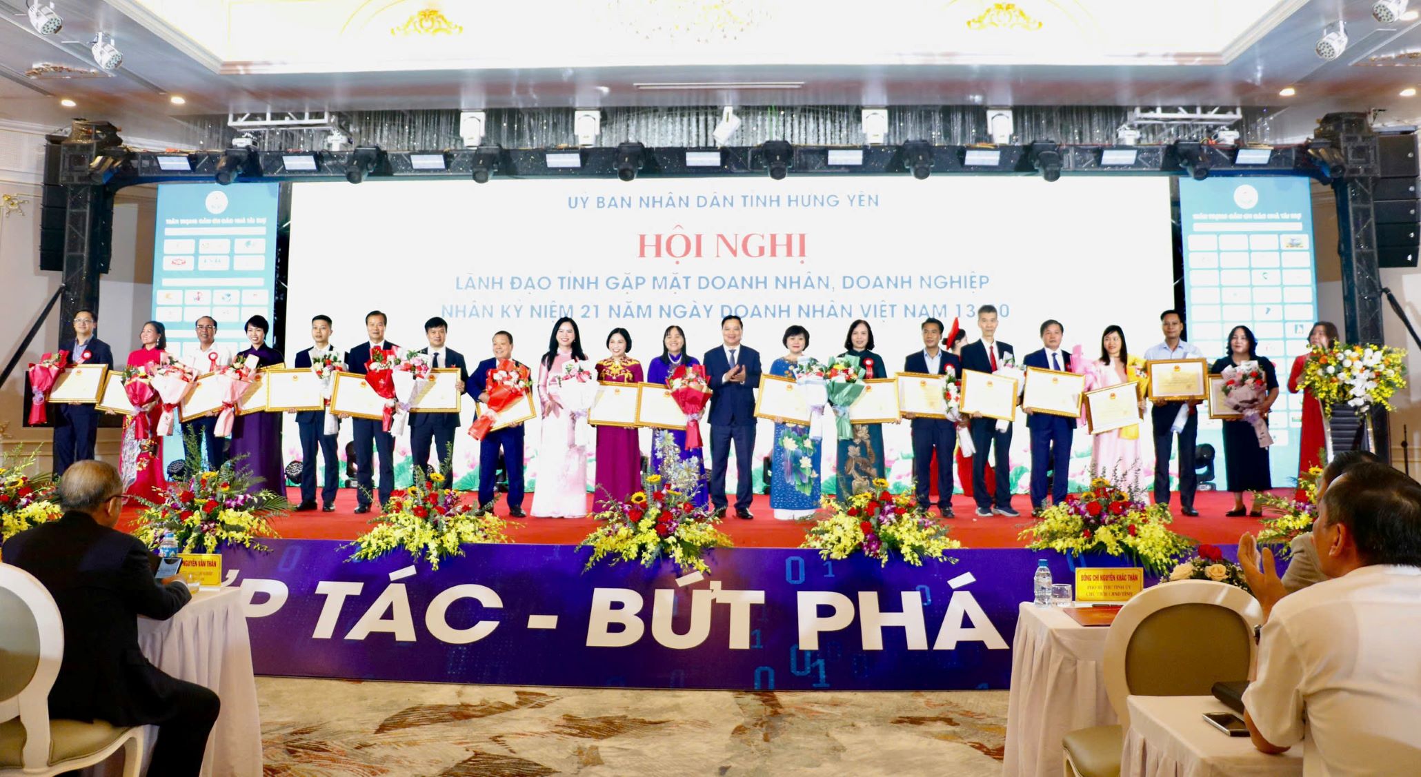 Nhân dịp này, nhiều tập thể, cá nhân có thành tích xuất sắc trong sản xuất, kinh doanh, xây dựng và phát triển cộng đồng doanh nghiệp, đóng góp tích cực vào sự phát triển kinh tế - xã hội của tỉnh đã được Chủ tịch Liên đoàn Thương mại và Công nghiệp Việt Nam (VCCI), Hiệp hội Doanh nghiệp nhỏ và vừa Việt Nam và Chủ tịch UBND tỉnh Hưng Yên trao tặng bằng khen.
