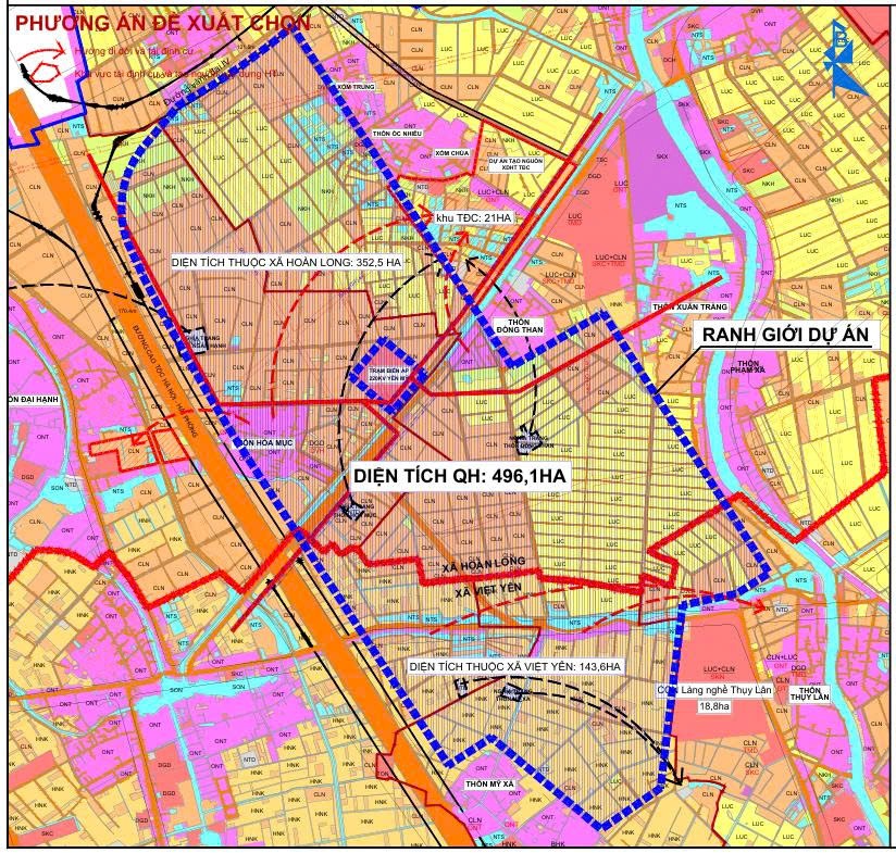 Theo phương án đề xuất, Khu công nghệ cao dự kiến được bố trí tại địa bàn hai xã Hoàn Long và Việt Yên, với quy mô khoảng 496 ha. Không gian này sẽ được tổ chức theo mô hình tích hợp, kết hợp giữa nghiên cứu, sản xuất và dịch vụ.