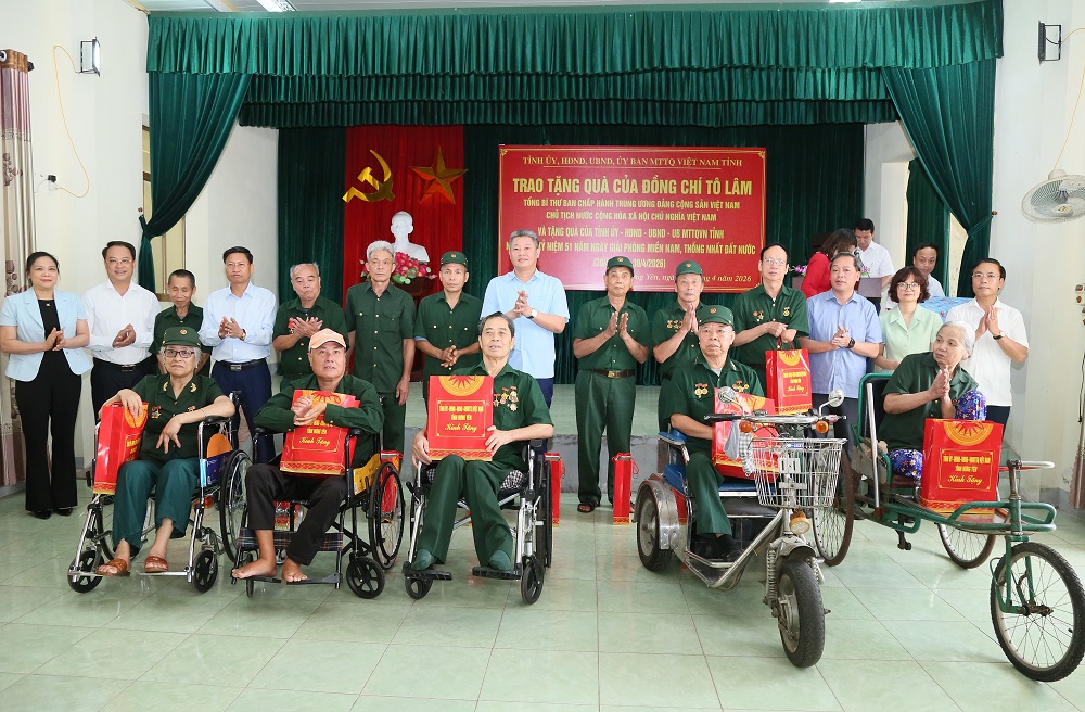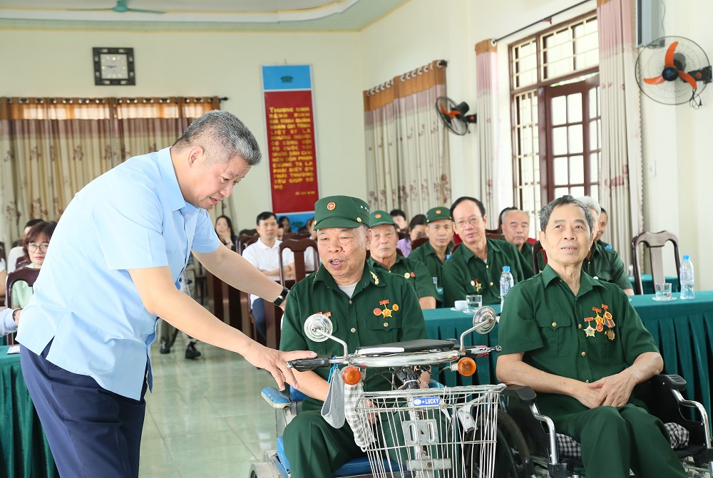 | Lãnh đạo tỉnh và các đại biểu trao quà của Tổng Bí thư, Chủ tịch nước Tô Lâm và quà của tỉnh tặng các thương binh, bệnh binh nặng. |