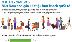 [Infographic] 9 tháng, Việt Nam đón gần 13 triệu lượt khách quốc tế