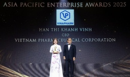 Bà Hàn Thị Khánh Vinh - Thành viên HĐQT, Tổng giám đốc Vinapharm nhận giải thưởng Doanh nhân Xuất sắc châu Á -