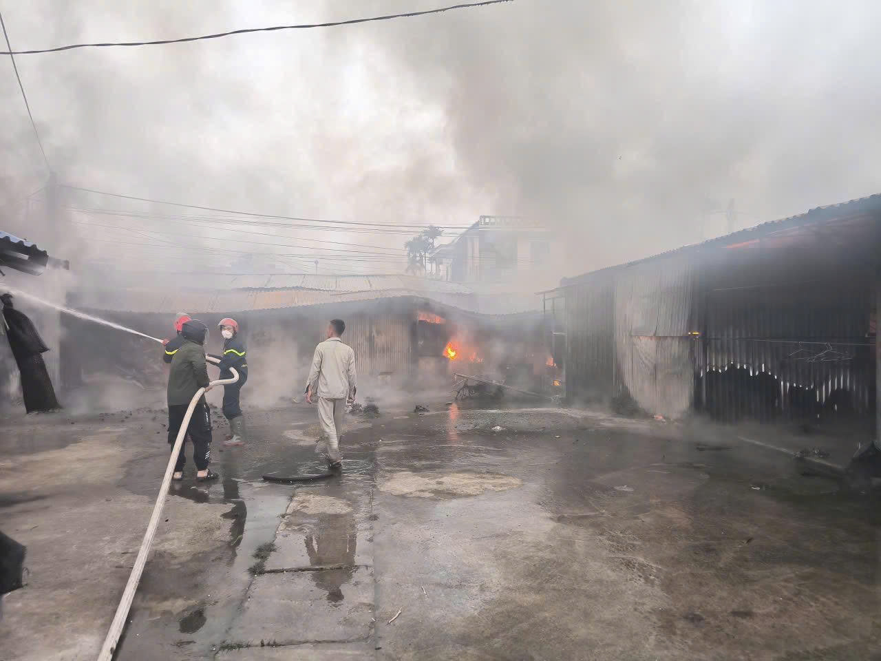 Tại khu vực được giao nhiệm vụ, lực lượng chữa cháy chuyên ngành đã triển khai đội hình phù hợp, sử dụng các lăng phun nước kết hợp chất tạo bọt để khoanh vùng, ngăn không cho ngọn lửa lan sang các ki-ốt liền kề. Song song với đó, các cán bộ, đội viên phối hợp với Công an xã, lực lượng dân quân tự vệ và người dân địa phương phá dỡ một số cấu kiện, hỗ trợ di chuyển tài sản ra khỏi khu vực nguy hiểm, góp phần hạn chế thiệt hại.