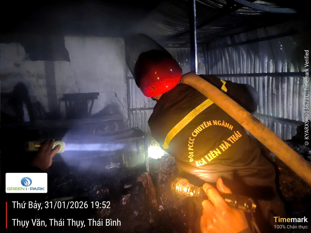 Ngay sau khi nhận được thông tin từ Công an xã Bắc Thụy Anh, lực lượng Phòng cháy chữa cháy và Cứu nạn cứu hộ (PCCC&CNCH) chuyên ngành KCN Liên Hà Thái đã báo cáo lãnh đạo doanh nghiệp và nhanh chóng điều động 2 xe chữa cháy cùng 12 cán bộ, đội viên đến hiện trường, tham gia công tác chữa cháy theo sự phân công của chỉ huy chung.