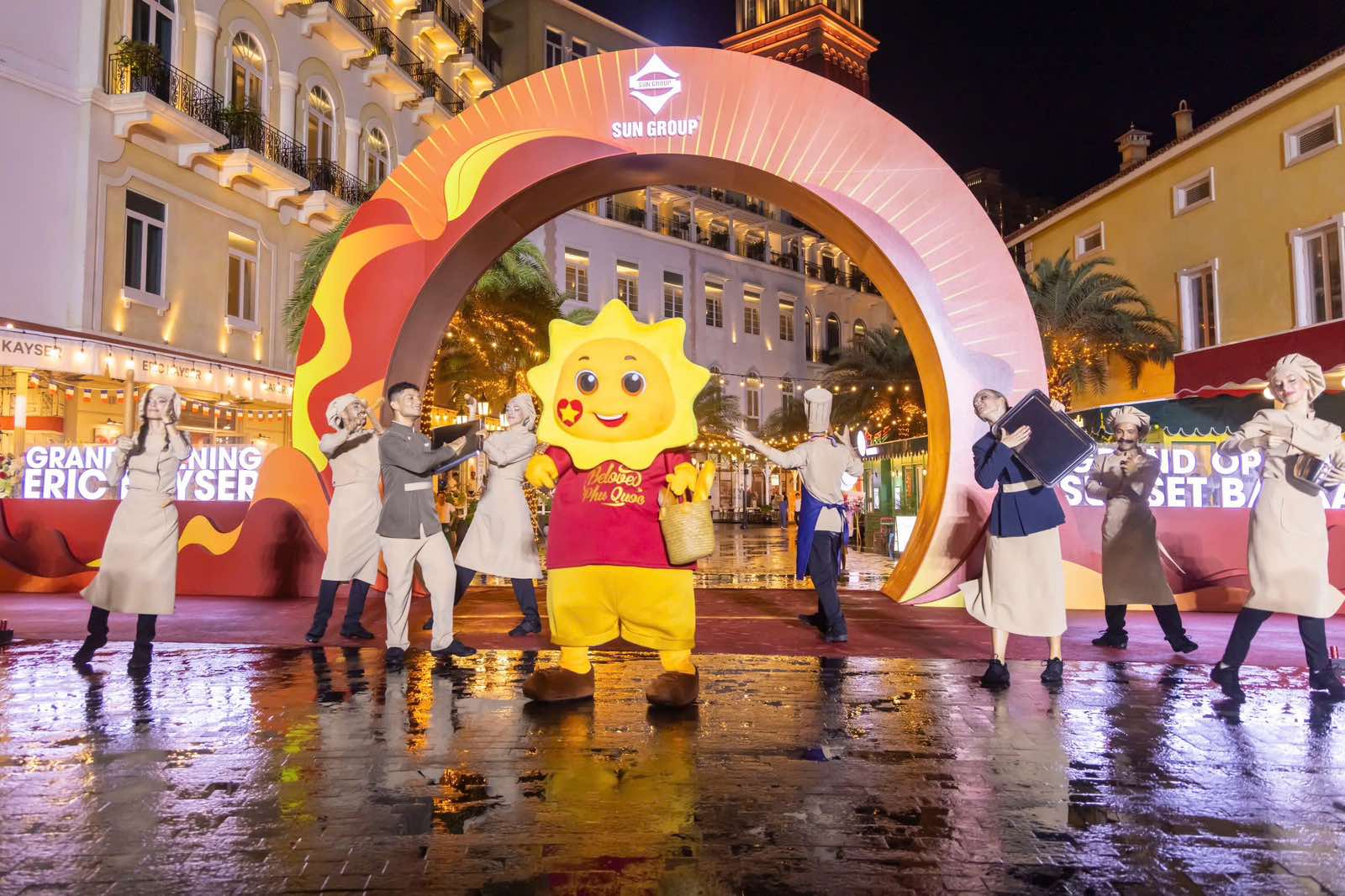 Ngày 1/11, sau sự kiện đón 3 chuyến bay đầu tiên của Sun PhuQuoc Airways từ Hà Nội, TP HCM, Đà Nẵng đến Phú Quốc, Tập đoàn Sun Group tiếp tục khiến du khách trong và ngoài nước choáng ngợp khi liên tiếp ra mắt và khai trương loạt sản phẩm du lịch đẳng cấp trong ngày, gồm phân khu Tramonto thuộc khách sạn La Festa Phu Quoc, Curio Collection by Hilton, khu phố thương mại Sunset Bazaar, tiệm bánh danh tiếng nước Pháp - Eric Kayser, Quảng trường Nụ Hôn - Kiss Square, các minishow hoạt náo YumYum show và Beer King show, và đặc biệt là show diễn Bản giao hưởng đại dương - Symphony of the sea.