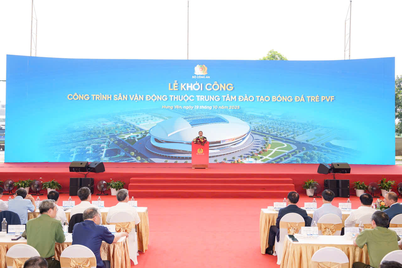 Phát biểu khai mạc tại buổi lễ, Đại tướng Lương Tam Quang, Ủy viên Bộ Chính trị, Bộ trưởng Bộ Công an cho biết, Lễ khởi công xây dựng sân vận động là hoạt động thiết thực chào mừng Đại hội đại biểu toàn quốc lần thứ XIV của Đảng, của lực lượng Công an nhân dân; đồng thời, là bước cụ thể hóa, triển khai phong trào thi đua "Ba Nhất" - kỷ luật nhất, trung thành nhất, gần dân nhất theo chỉ đạo của Tổng Bí thư Tô Lâm tại Đại hội Đảng bộ Công an Trung ương lần thứ VIII.
