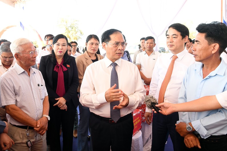 | Phó Thủ tướng Bùi Thanh Sơn trò chuyện cùng người dân trong vùng dự án Nhà máy điện hạt nhân Ninh Thuận 1 - Ảnh: VGP. |