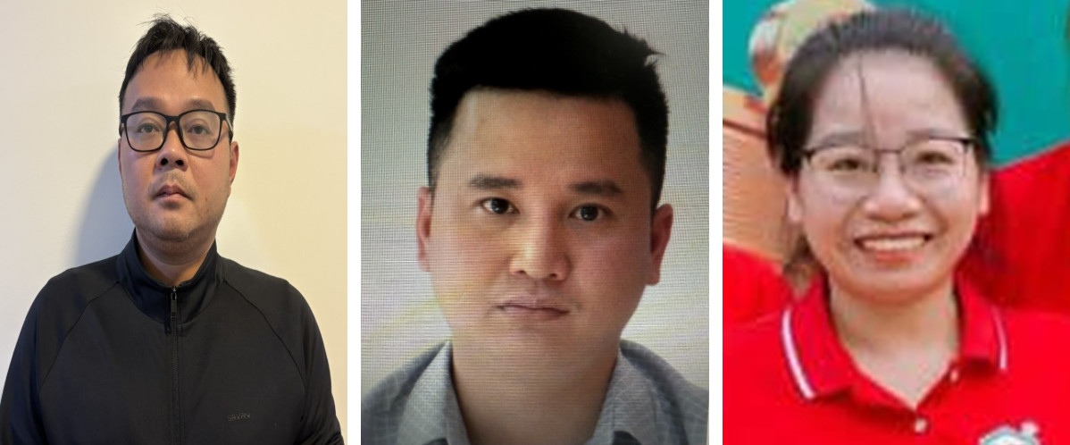 | Từ trái qua: Các bị can Trịnh Quốc Khánh, An Văn Bắng, Nguyễn Thị Hương. Ảnh: BCA |