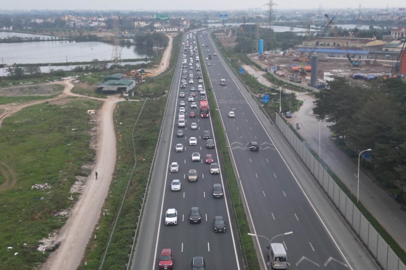 | Ùn tắc kéo dài trên cao tốc Pháp Vân - Cầu Giẽ hướng vào trung tâm Hà Nội ngày 21/2. |
