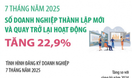 Doanh nghiệp mới tăng đều, nhưng khó khăn, điểm nghẽn vẫn chưa được giải quyếtTính chung 7 tháng năm 2025, cả nước có 107.700 doanh nghiệp đăng ký thành lập mới, với tổng vốn đăng ký là 928,4 nghìn tỷ đồng. -
