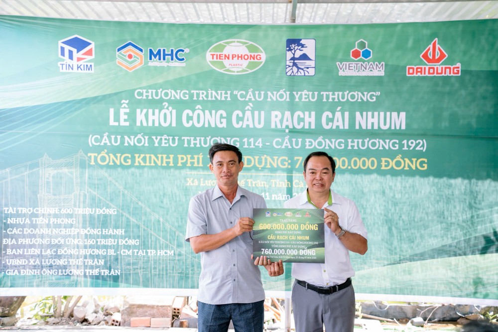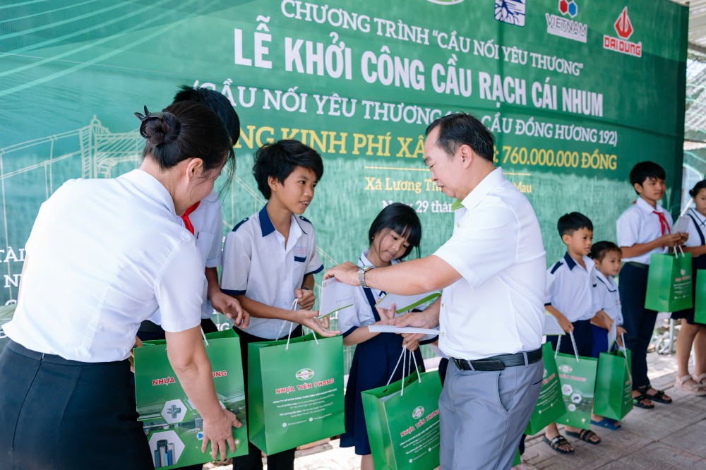 Đại diện nhà tài trợ, ông Nguyễn Ngọc Tâm từ Công ty Cổ phần Nhựa Thiếu niên Tiền Phong phía Nam chia sẻ: “Đối với chúng tôi, mỗi cây cầy không chỉ là một công trình giao thông mà còn là sự kết nối yêu thương, là cách để mang lại cơ hội và sự an tâm cho người dân. Khi chứng kiến cảnh các em nhỏ phải đi học qua cây cầu cũ mong manh, chúng tôi càng quyết tâm đồng hành cùng địa phương để thay đổi điều đó. Sự chung tay của các đơn vị đồng hành Nhựa Tín Kim, Hiệp hội Nhựa Việt Nam, Minh Hưng, Đại Dũng, Ban liên lạc đồng hương Bạc Liêu – Cà Mau và nguồn đối ứng từ địa phương cho thấy tinh thần đoàn kết đáng trân trọng, cùng hướng đến mục tiêu vì cộng đồng.”