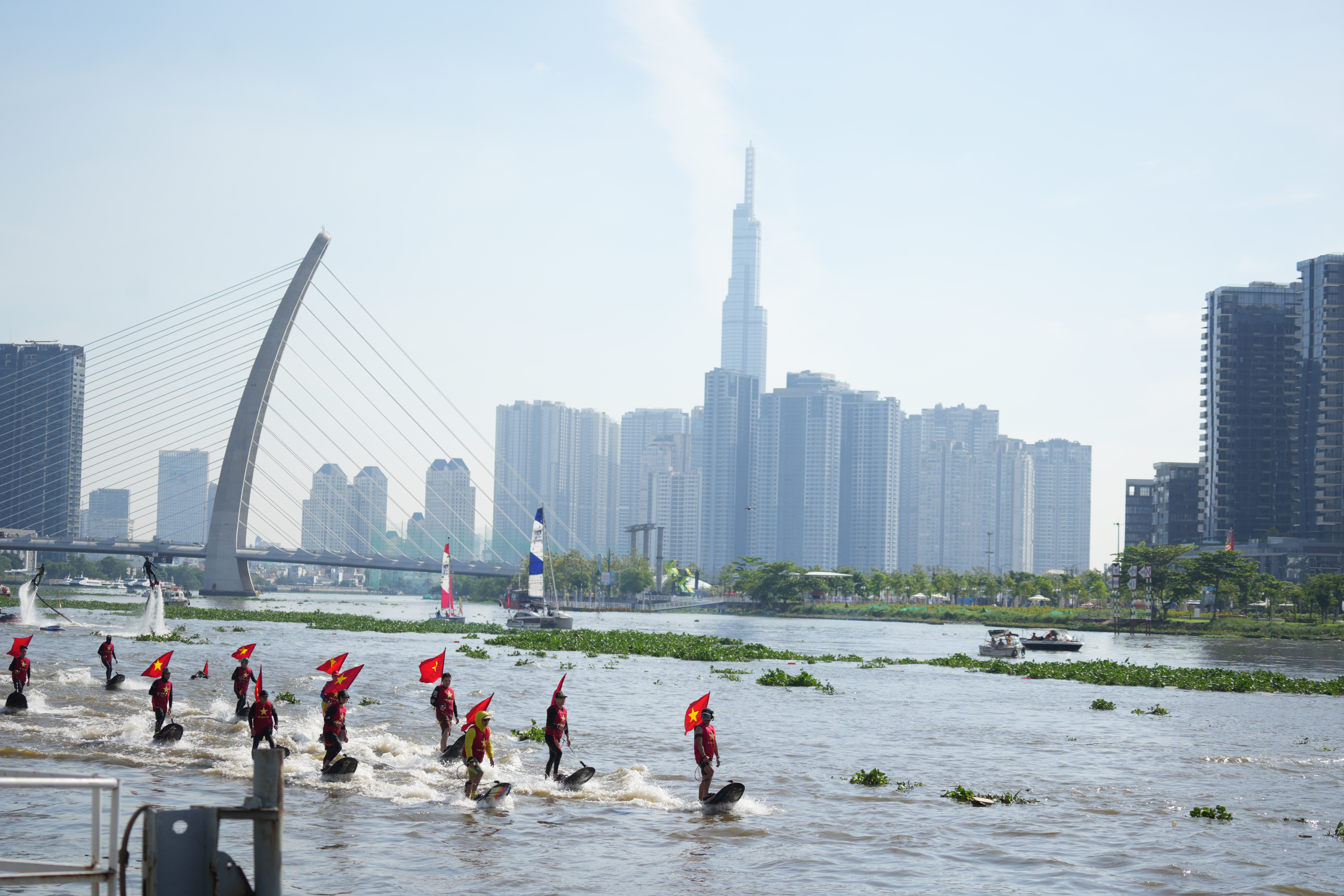 Rời TP.HCM, đoàn di chuyển theo trục sông và đường bộ về khu vực Bình Dương cũ. Không gian đô thị dần lùi lại phía sau, thay vào đó là mảng xanh ven sông, làng nghề truyền thống và các mô hình sản xuất hiện đại.