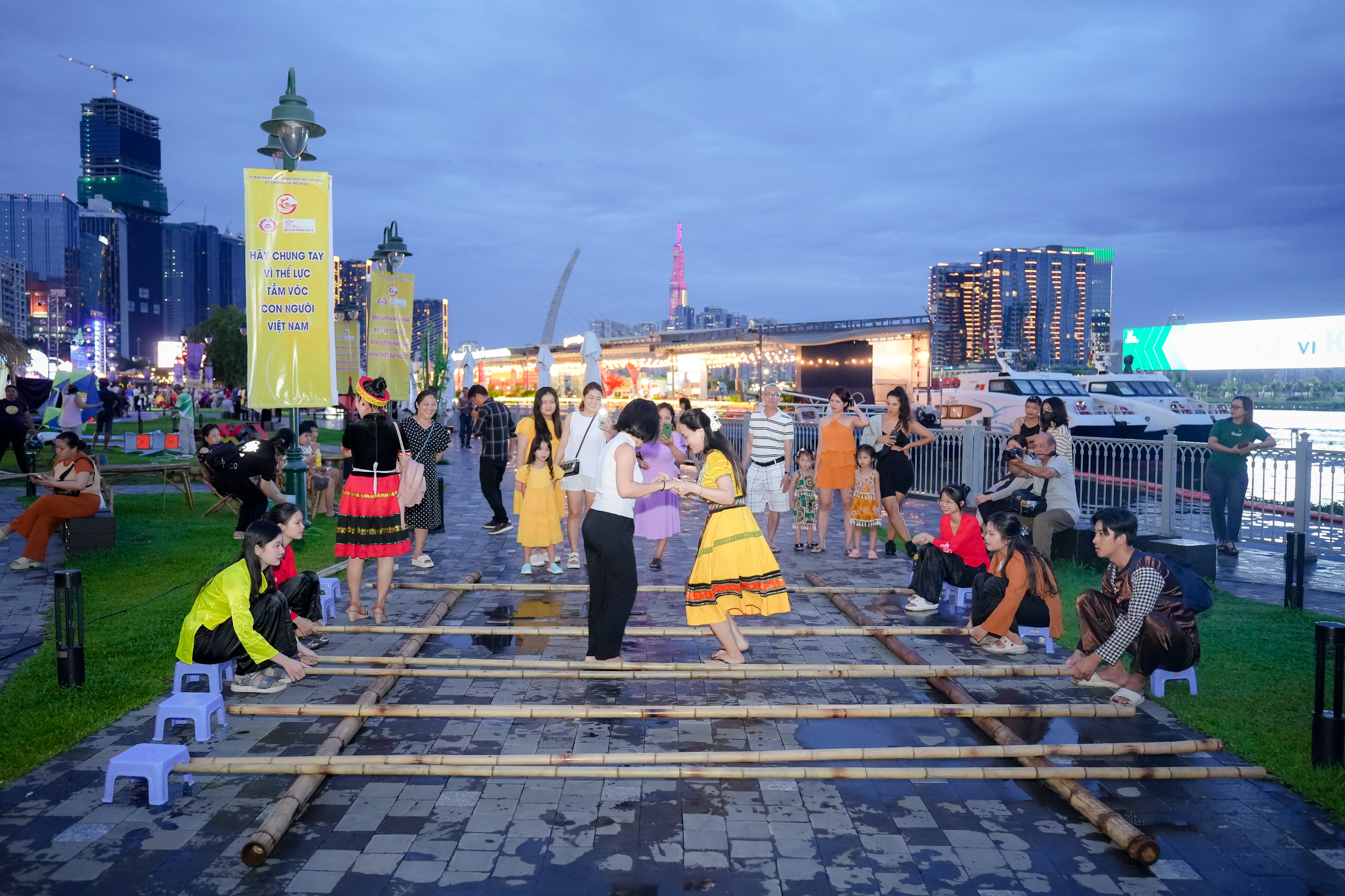 Ngày đầu tiên, hành trình vẫn khởi đi từ trái tim của TP.HCM. Một city tour được thiết kế theo chuyên đề di sản kiến trúc, trung tâm tài chính, các không gian mua sắm và sáng tạo mới. Khi chiều buông, đoàn dừng chân ở một nhà hàng trên tầng cao. Từ đây, toàn cảnh thành phố hiện ra lung linh dưới ánh đèn, vừa náo nhiệt, vừa rất đỗi quen thuộc.