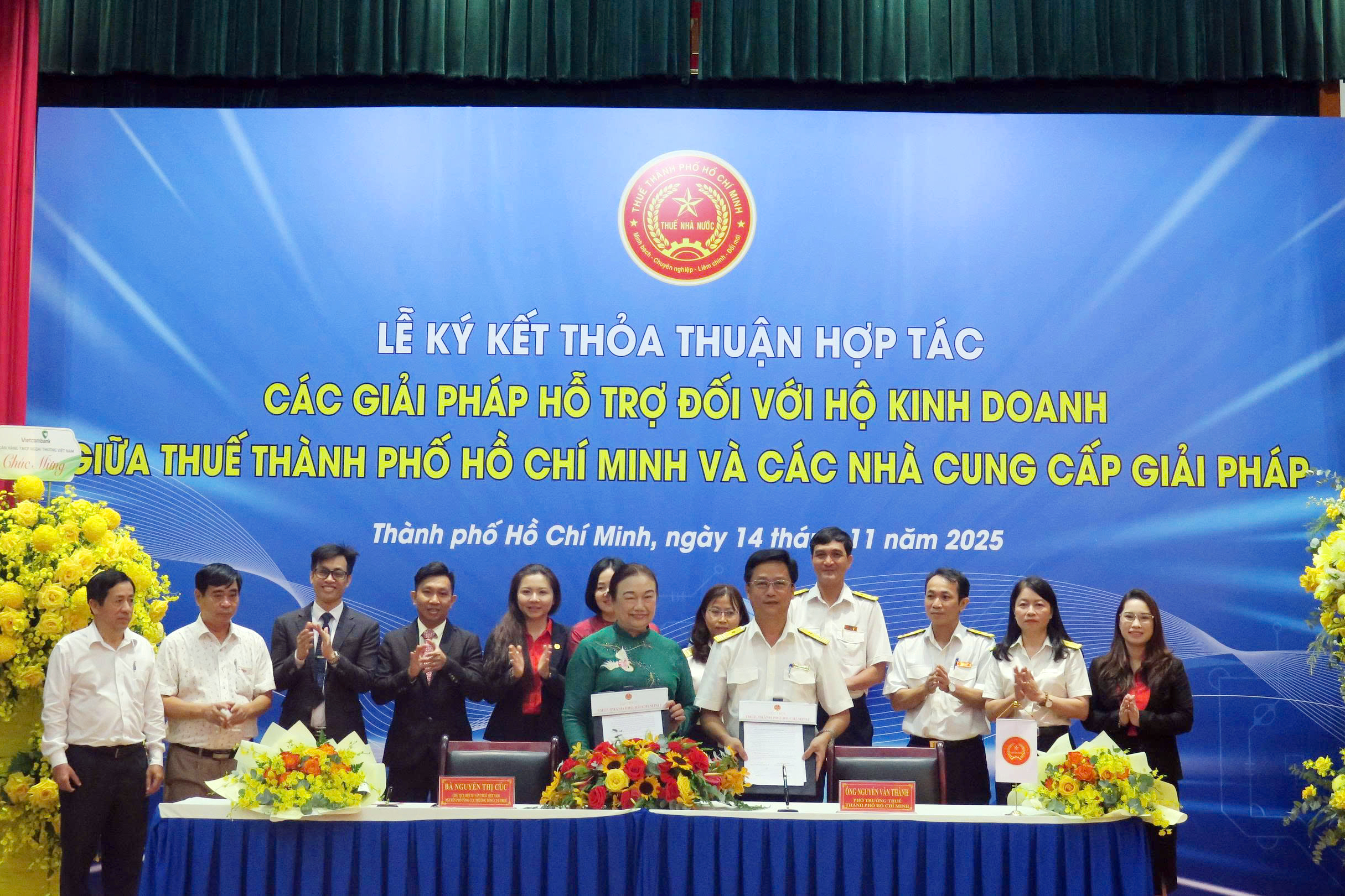 Ngày 3/11, Thuế TP. Hồ Chí Minh ký kết hợp tác với các đơn vị cung cấp giải pháp để hướng dẫn chính sách thuế, hỗ trợ hộ kinh doanh chuyển đổi số, triển khai hóa đơn điện tử.