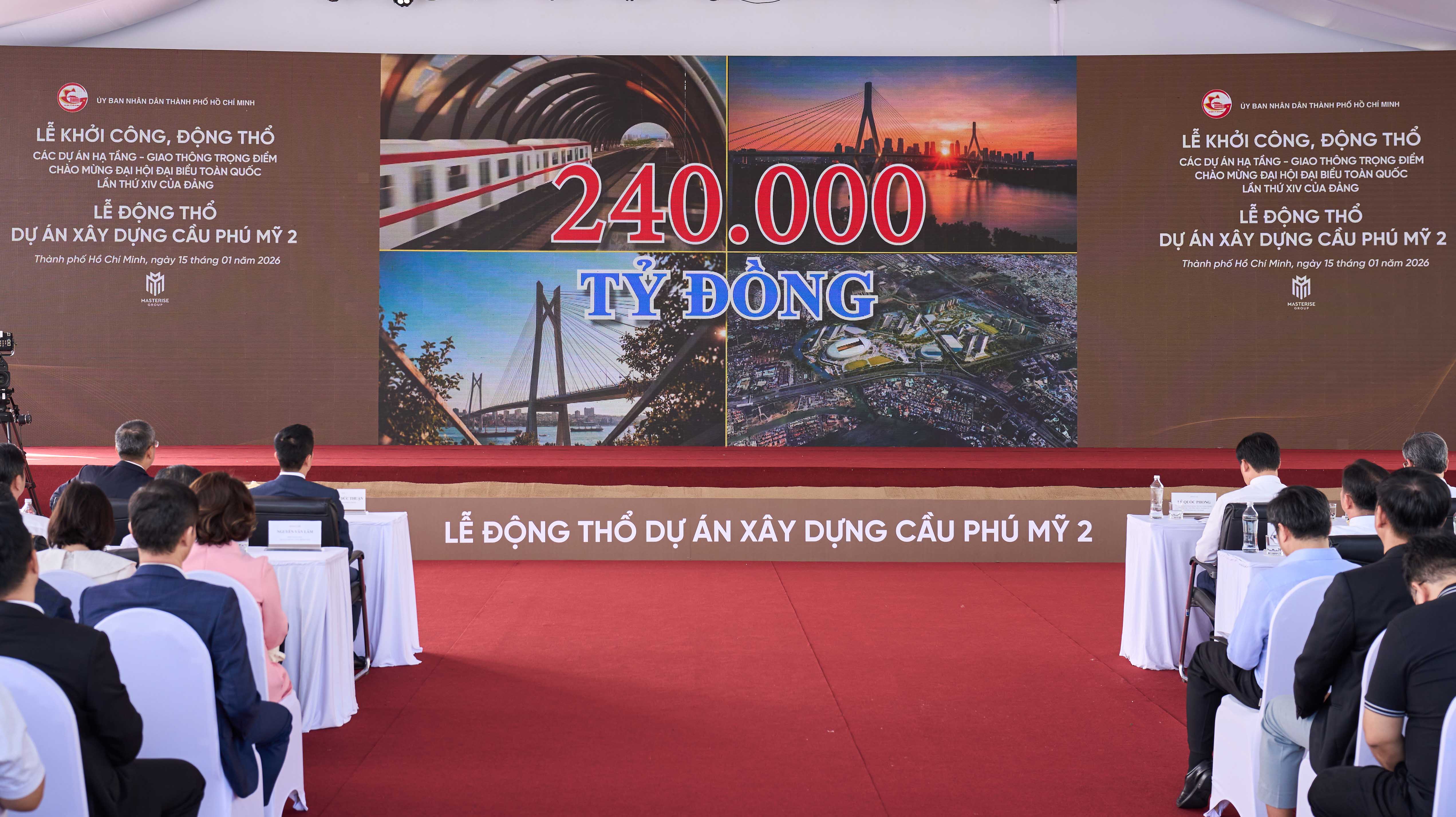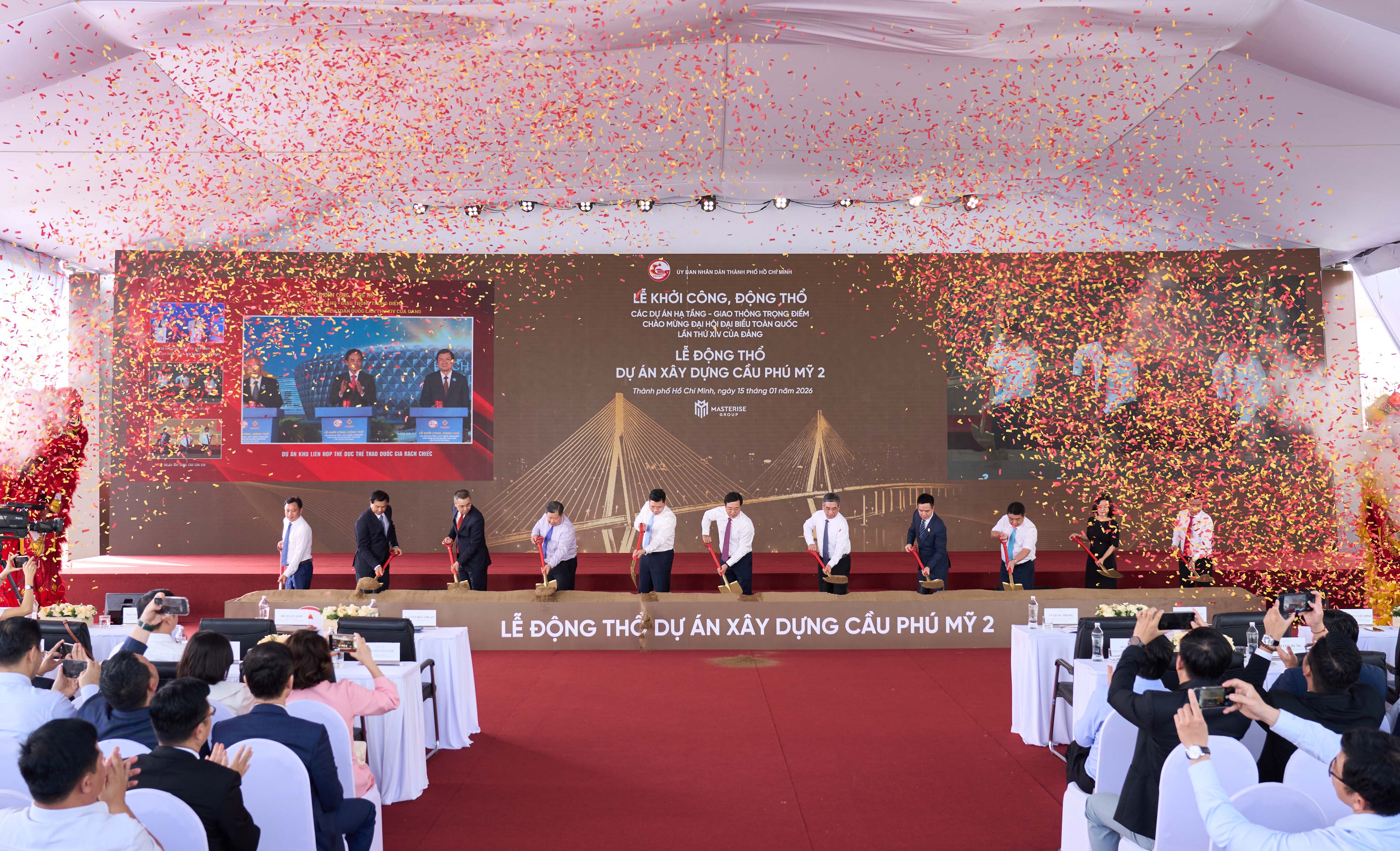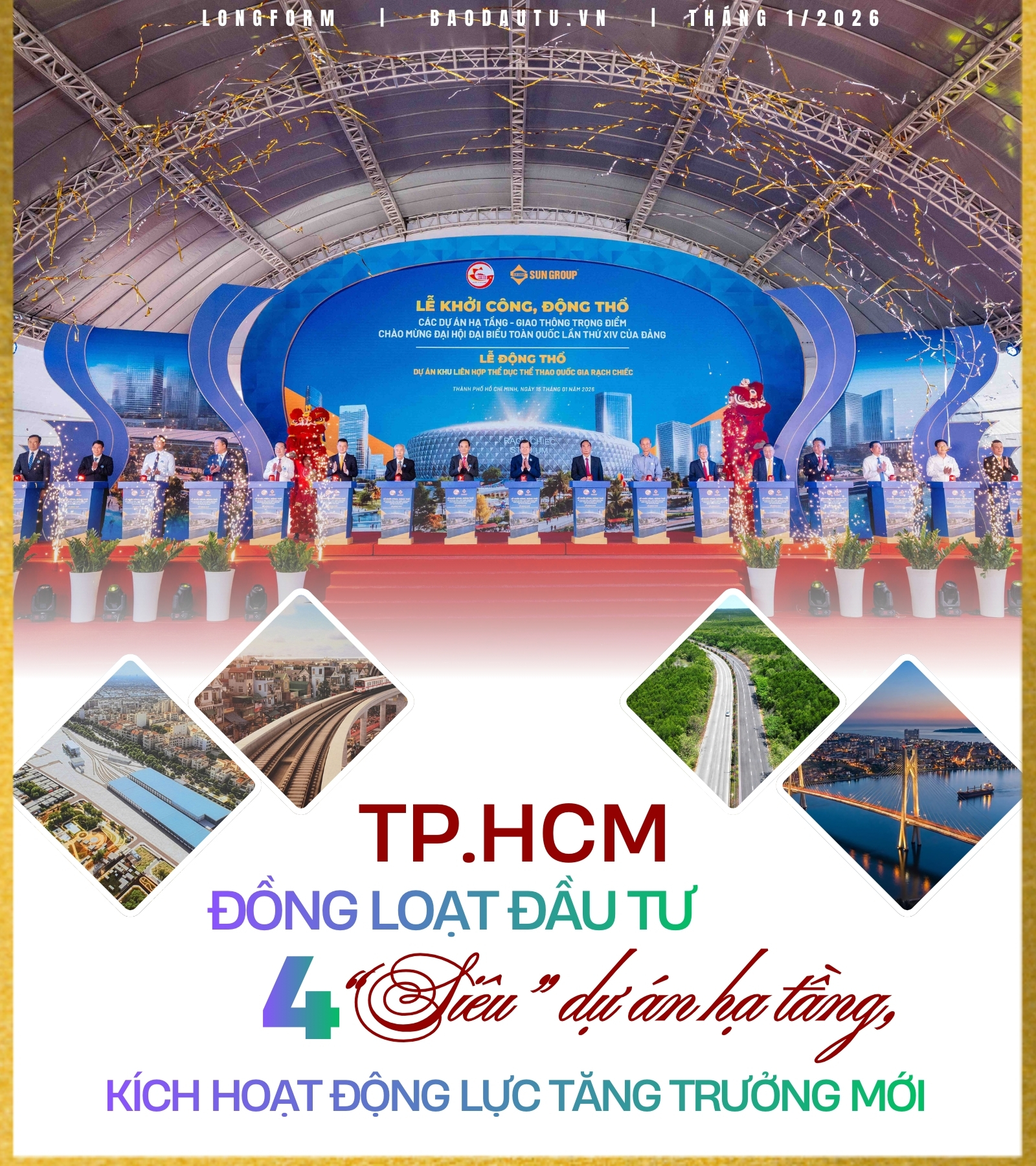 Ngày 15/1/2026, đánh dấu một cột mốc lịch sử của TP.HCM sau sáp nhập khi Thành phố đồng loạt khởi công, động thổ 4 “siêu” dự án hạ tầng trọng điểm gồm: tuyến metro số 2 (Bến Thành - Tham Lương), cầu Cần Giờ, cầu Phú Mỹ 2 và Khu Thể dục thể thao quốc gia Rạch Chiếc với tổng mức đầu tư lên đến hàng tỷ USD. Các công trình này không chỉ mang ý nghĩa chào mừng Đại hội lần thứ XIV của Đảng mà còn mở ra thời kỳ phát triển mới cho TP.HCM sau sáp nhập.