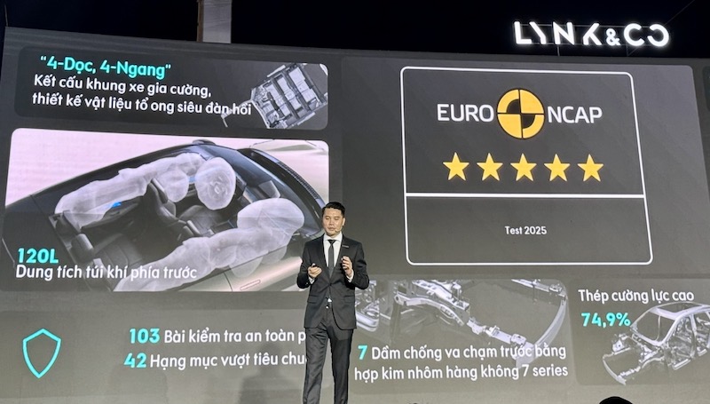 Lynk & Co 08 EM-P cũng đạt xếp hạng 5 sao từ tổ chức Euro NCAP. Mẫu xe được trang bị nền tảng khung gầm CMA Evo với cấu trúc cực kỳ vững chắc: 74,94% thép cường lực và 13% thép dập nóng siêu bền.