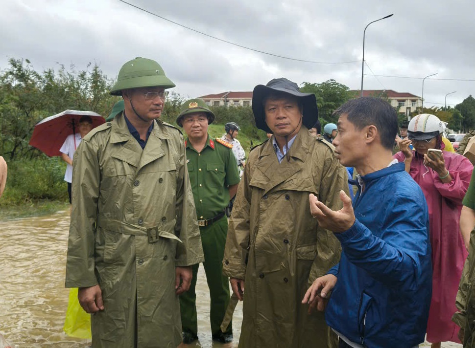 | Bí thư Thành uỷ Đà Nẵng, ông Lê Ngọc Quang kiểm tra thực tế tình hình mưa lũ. |
