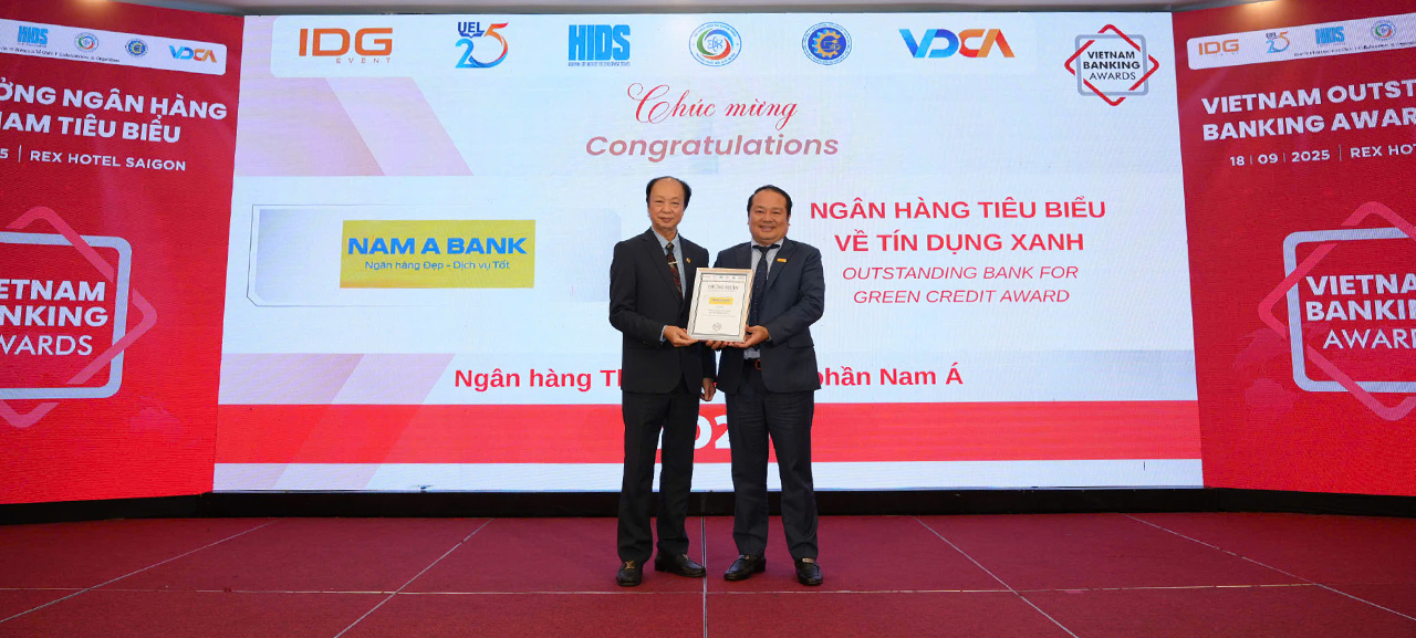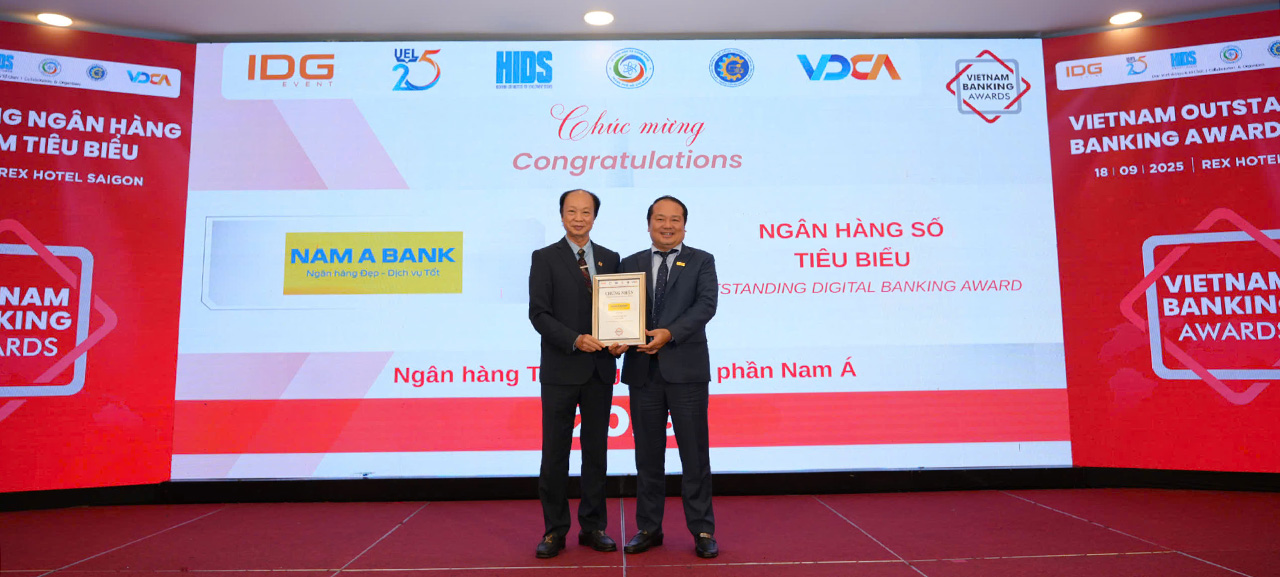 iải thưởng năm nay ghi nhận những ngân hàng và dịch vụ tài chính hoạt động xuất sắc, dựa trên kết quả khảo sát hơn 23.000 khách hàng cá nhân, doanh nghiệp và 37 hồ sơ tham dự từ các tổ chức tín dụng. Nam A Bank đã vượt qua nhiều tiêu chí khắt khe của Ban tổ chức để được vinh danh tại hai hạng mục nêu trên. Đây cũng là sự ghi nhận những nỗ lực của ngân hàng trước thềm kỷ niệm 33 năm thành lập (21/10/1992 - 21/10/2025), khẳng định vị thế và uy tín trên thị trường.