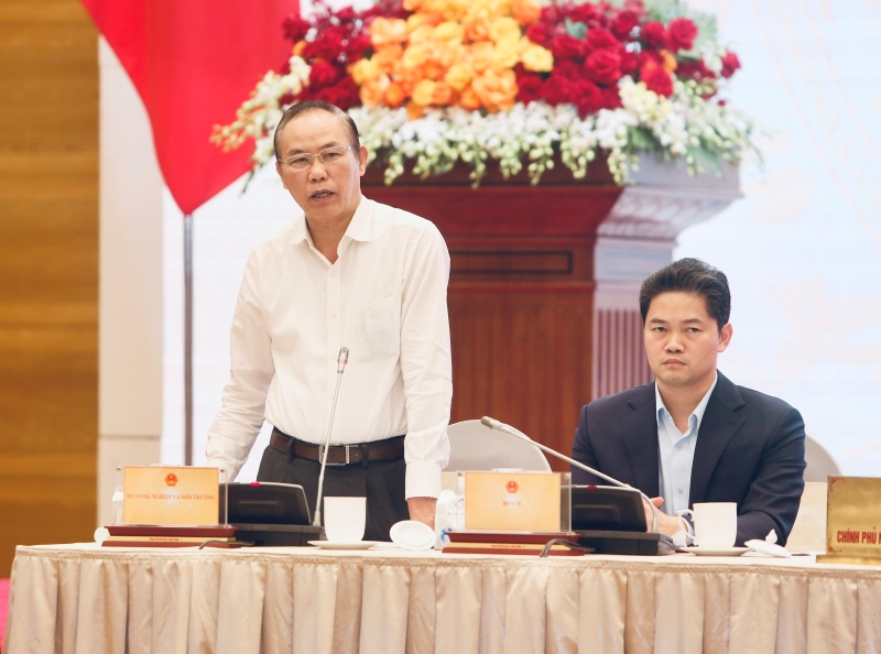| Thứ trưởng Bộ Nông nghiệp và Môi trường Phùng Đức Tiến trả lời báo chí. Ảnh: Đức Minh. |