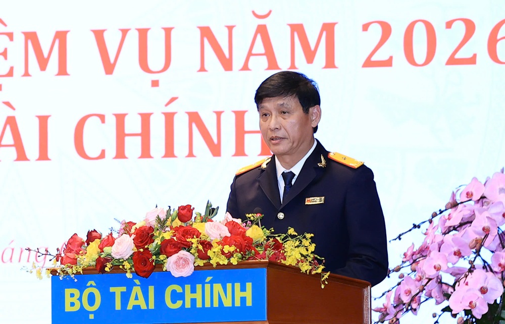 | Phó Cục trưởng Cục Thuế Đặng Ngọc Minh báo cáo tại Hội nghị tổng kết công tác năm 2025, triển khai nhiệm vụ năm 2026 ngành Tài chính tổ chức ngày 6/1. Ảnh: Đức Thanh. |