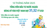 Tổng vốn đầu tư nước ngoài đăng ký vào Việt Nam đạt 31,52 tỷ sau 10 tháng năm 2025 -
