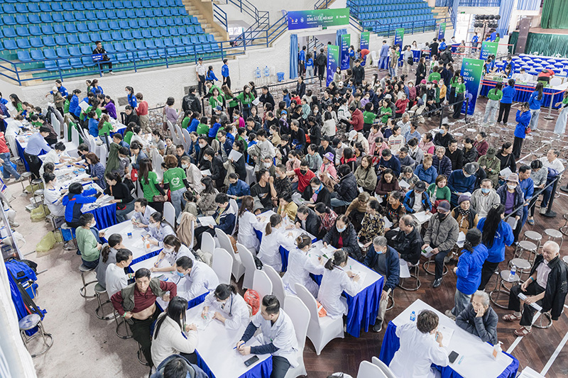 Từ sáng sớm, dòng người đã xếp hàng đăng ký khám bệnh, phần lớn là thanh niên, nhân viên văn phòng, công nhân, viên chức trẻ… Đội ngũ hơn 70 y bác sĩ từ các bệnh viện tuyến Trung ương và địa phương đã trực tiếp thăm khám với nhiều hoạt động như: khám tổng quát, siêu âm ổ bụng, xét nghiệm máu, sàng lọc các triệu chứng nguy hiểm, tư vấn dinh dưỡng và hoạt động thể chất lành mạnh… Điểm mới của chương trình năm nay là ứng dụng trí tuệ nhân tạo (AI) trong chẩn đoán, sử dụng dữ liệu bộ câu hỏi và kết quả xét nghiệm nhanh để đánh giá nguy cơ bệnh không lây nhiễm, nguy cơ ung thư đường tiêu hóa.
