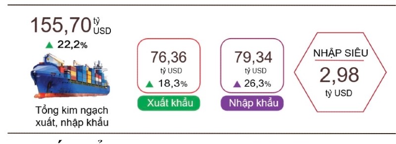 Nhập siêu quay trở lại với nền kinh tế, đạt gần 3 tỷ USD trong 2 tháng đầu năm -