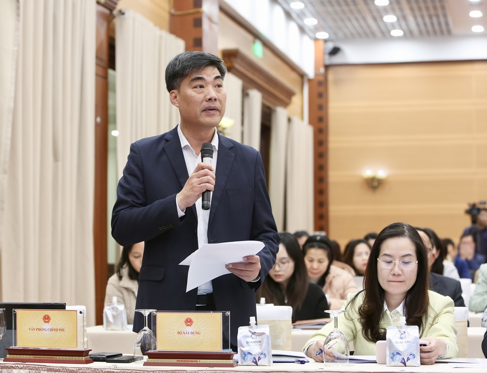 | Người phát ngôn Bộ Xây dựng trả lời câu hỏi của phóng viên. Ảnh: Đức Minh. |