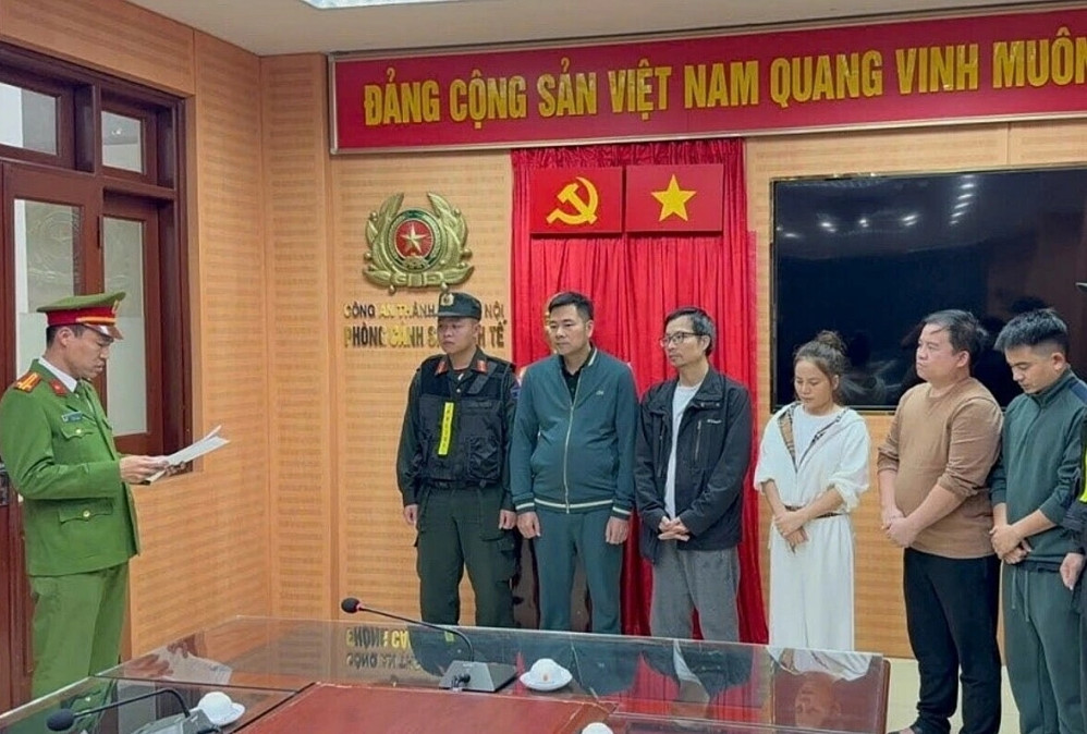 | Cơ quan điều tra tống đạt các quyết định, lệnh tố tụng đối với nhóm đối tượng. Ảnh: CAHN |