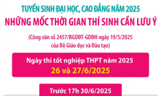 | Theo Bộ Giáo dục và Đào tạo, tuyển sinh đại học năm 2026 sẽ diễn ra sớm hơn khoảng hai tuần so với năm trước. Các trường phải công bố đầy đủ thông tin tuyển sinh chậm nhất ngày 15/2/2026. |