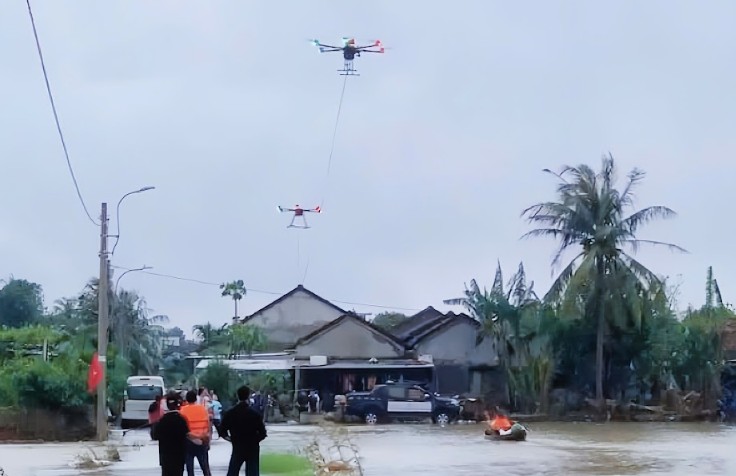 UAV vận chuyển nhu yếu phẩm đến bà con vùng bị lũ lụt tại thôn Quy Hậu (thuộc xã Hòa Trị, huyện Phú Hòa, tỉnh Phú Yên cũ). |