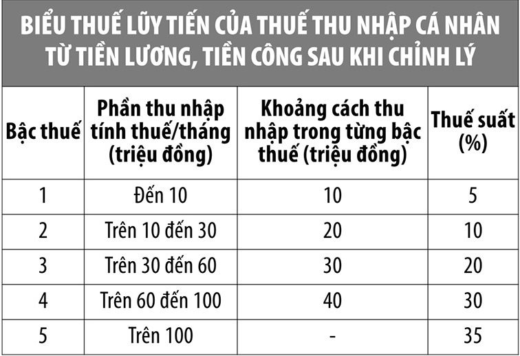 Điều chỉnh biểu thuế lũy tiến, các bậc đều giảm nghĩa vụ thuế