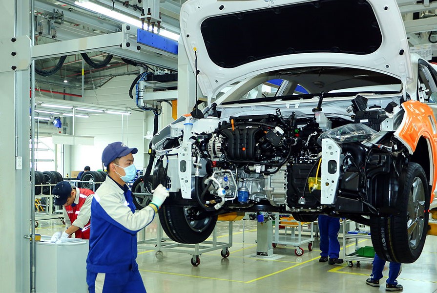 | Công nhân lắp ráp ô tô tại Nhà máy ô tô Hyundai Thành Công, KCN Gián Khẩu. |