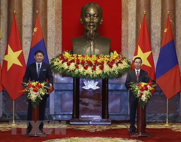 Phát biểu tại hội đàm, thay mặt Nhà nước và Nhân dân Việt Nam, Chủ tịch nước Võ Văn Thưởng hoan nghênh Tổng thống Khurelsukh, Phu nhân và đoàn đại biểu cấp cao Mông Cổ thăm cấp Nhà nước tới Việt Nam; đánh giá cao việc Tổng thống Khurelsukh chọn Việt Nam là nước thăm song phương đầu tiên trong khu vực Đông Nam Á; chúc mừng Mông Cổ về những thành tựu trong xây dựng và phát triển đất nước, nhất là các thành tựu bước đầu trong khuôn khổ triển khai “chính sách phục hồi mới” sau đại dịch và mục tiêu chiến lược “Tầm nhìn 2050”; khẳng định Đảng, Nhà nước Việt Nam luôn coi trọng và mong muốn làm sâu sắc hơn nữa quan hệ hữu nghị truyền thống với Mông Cổ; cùng nỗ lực đưa quan hệ hai nước phát triển lên tầm cao mới thực chất, hiệu quả, toàn diện và lâu dài.