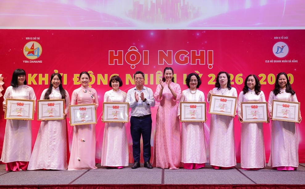 | Hội viên Câu lạc bộ Nữ Doanh nhân Đà Nẵng nhận bằng khen của Hội Doanh nhân trẻ Việt Nam. |