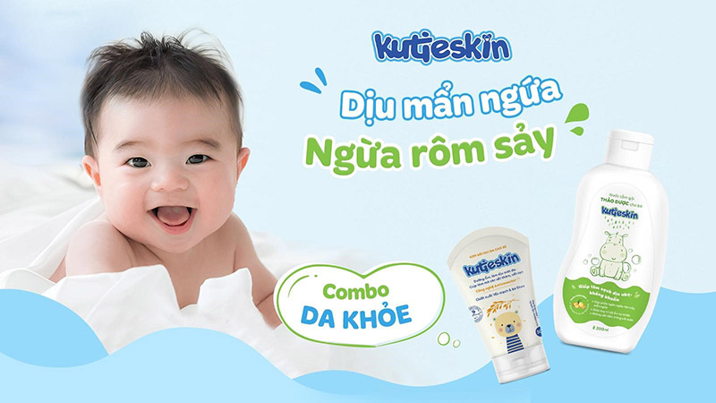 Kutieskin mách cho mẹ thêm 1 tip chăm sóc da con hiệu quả. Nếu bé đang gặp tình trạng rôm sảy, mẩn ngứa hay hăm thì mẹ nên kết hợp nước tắm thảo dược Kutieskin với sản phẩm kem bôi chuyên dụng để dịu nhanh hơn ngứa ngáy, cho con dễ chịu và đỡ quấy khóc.