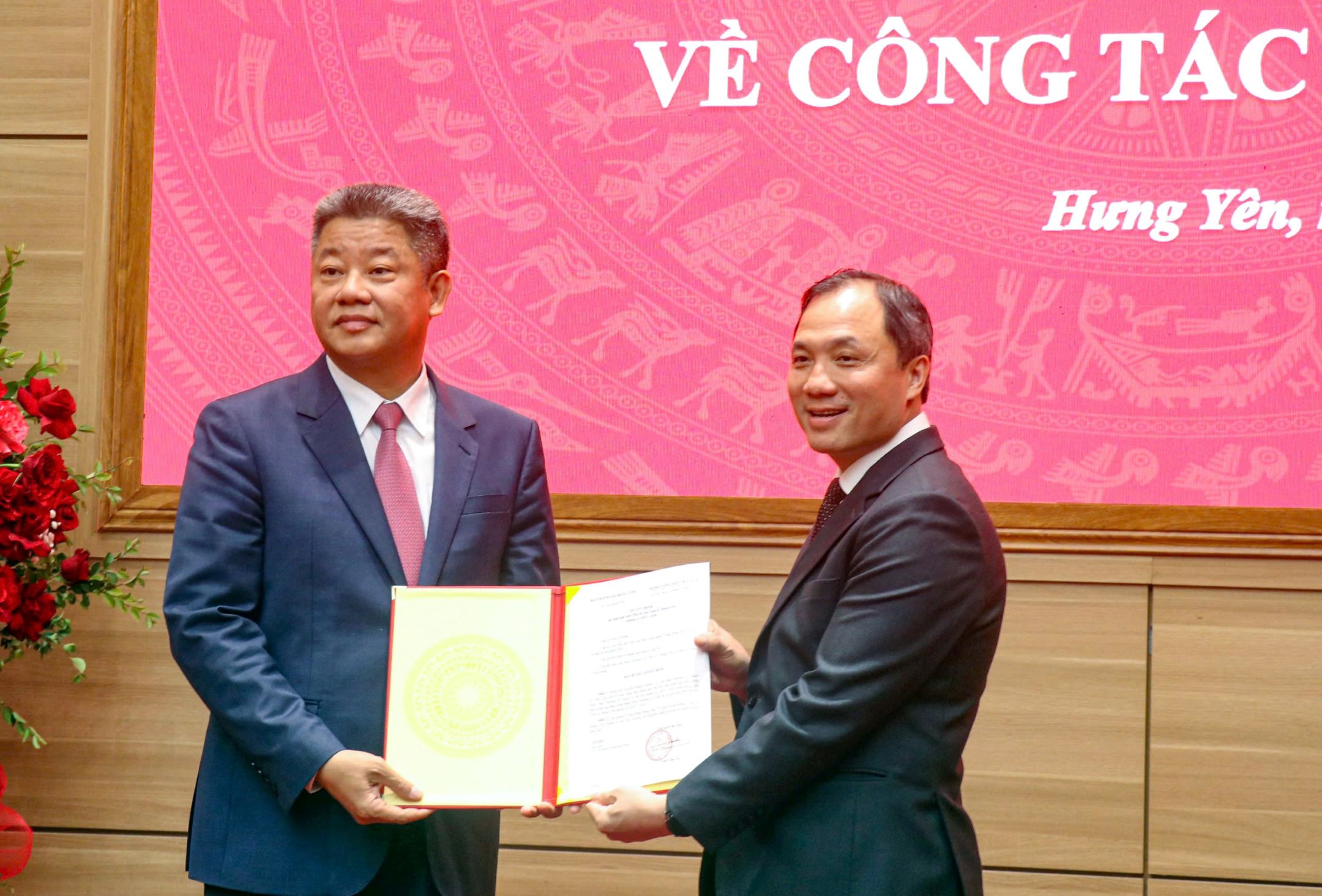 | Phó trưởng Ban Thường trực Ban Tổ chức Trung ương (bên phải) trao Quyết định của Bộ Chính trị cho ông Nguyễn Mạnh Quyền giữ chức Phó Bí thư Tỉnh ủy Hưng Yên, nhiệm kỳ 2025 - 2030. |